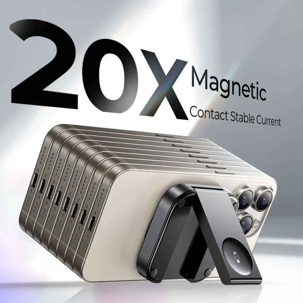 The MagMini features a strong magnetic attraction and is crafted from premium materials like aluminum alloy with CNC machining, ensuring stability and durability while your devices charge.