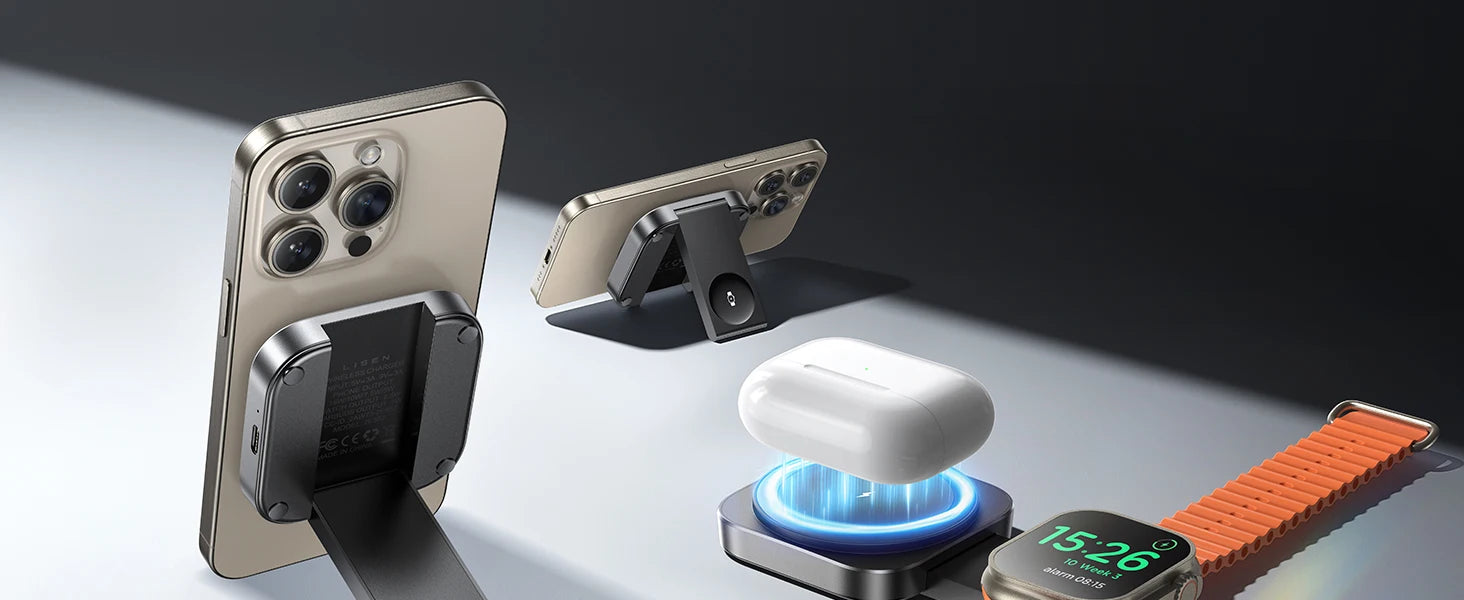 Enjoy fast and efficient charging with built-in magnets that ensure perfect alignment for your devices, eliminating the hassle of cables.