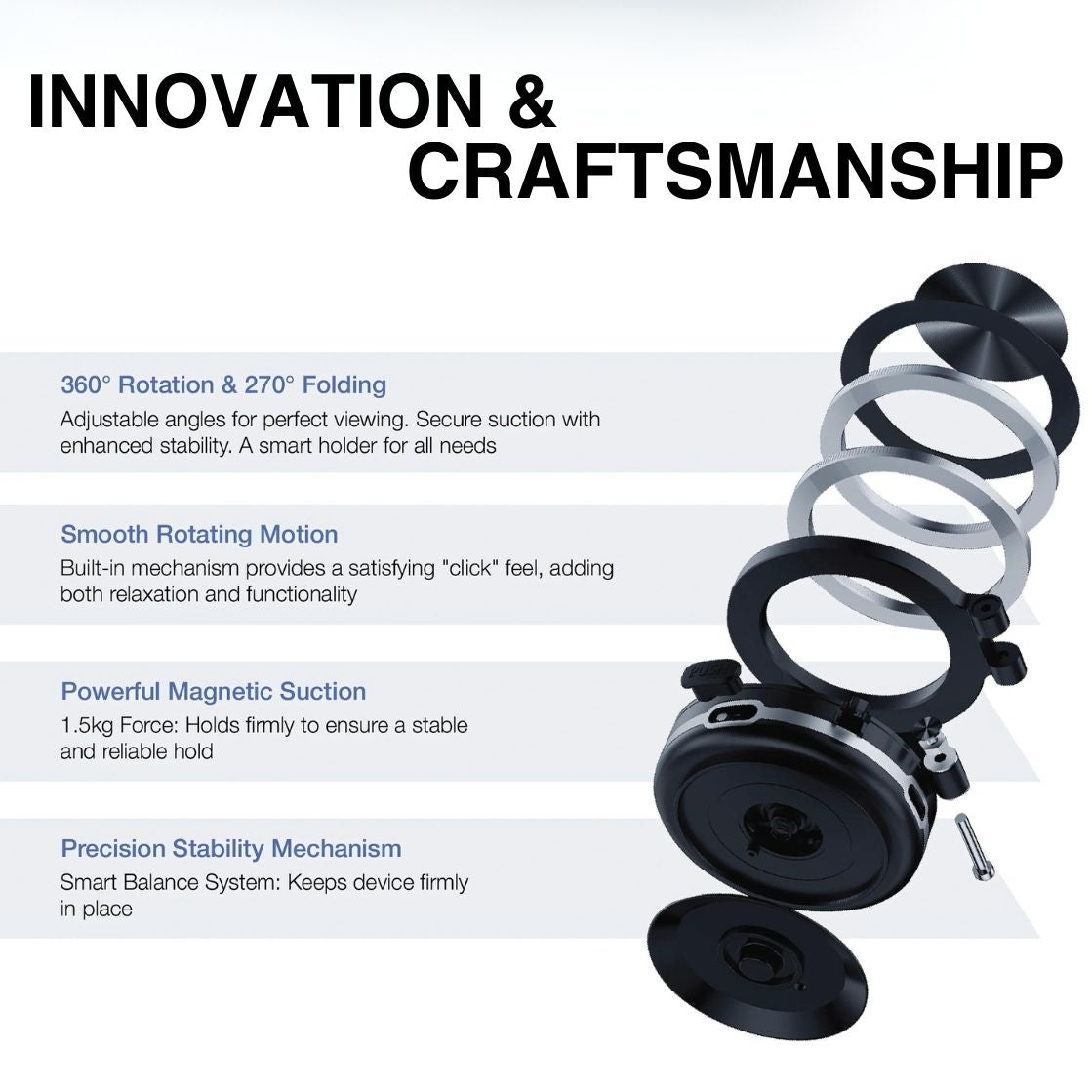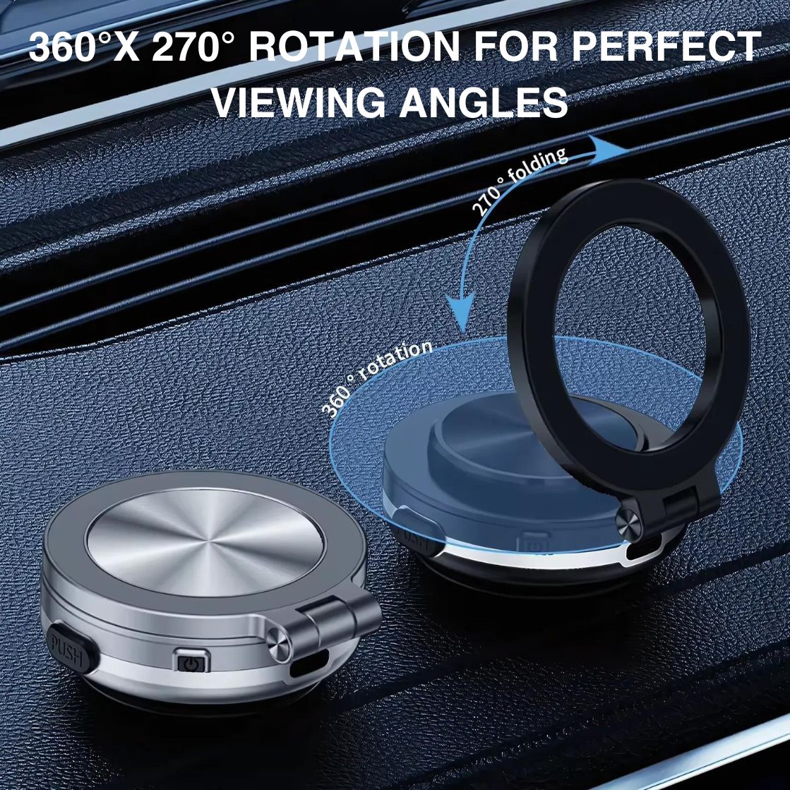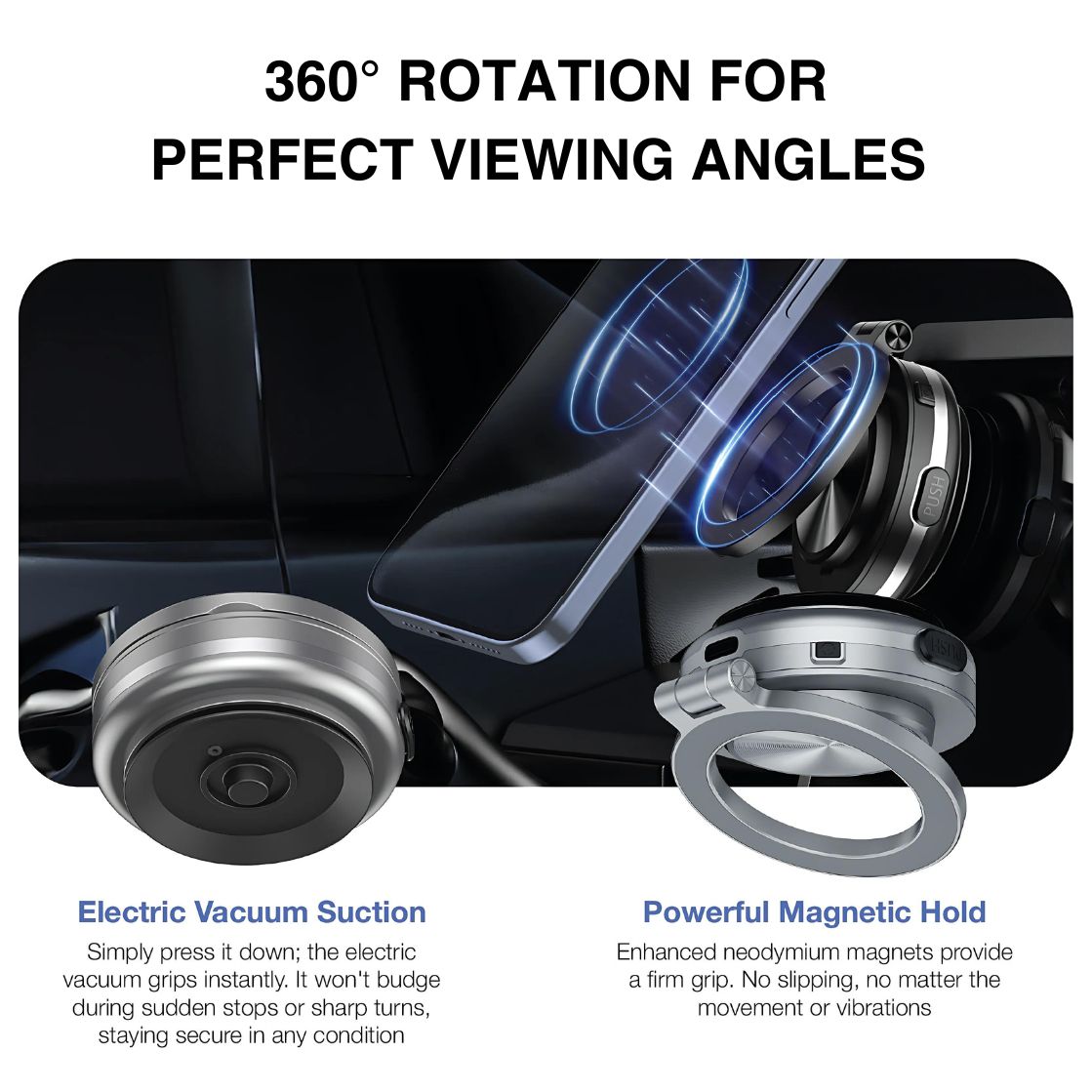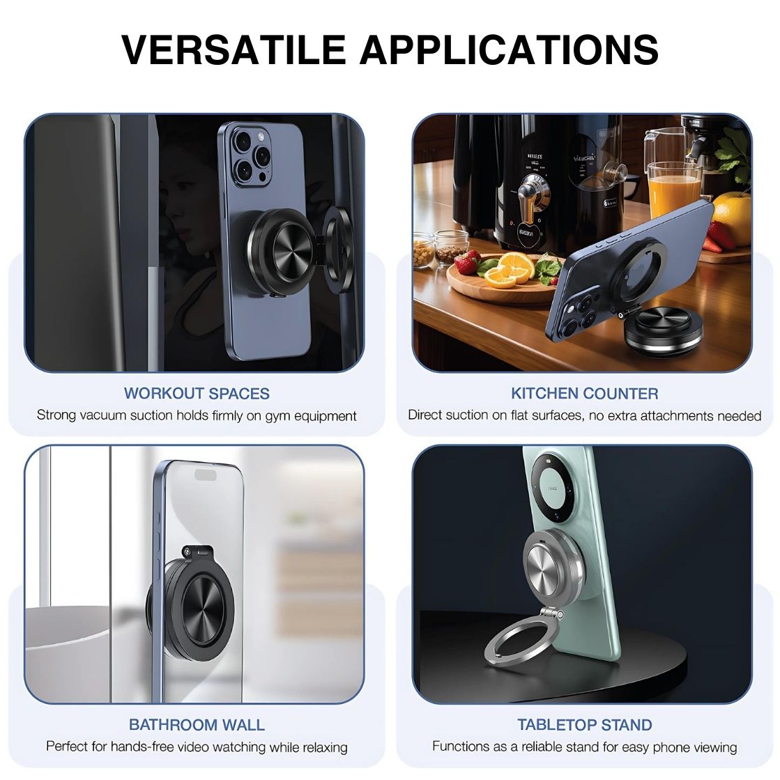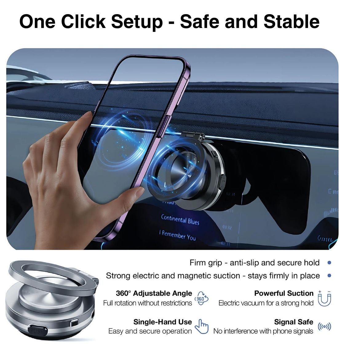 Combines an ultra-strong magnetic hold with a smart suction cup that automatically tightens upon detecting air, ensuring your phone remains stable on any smooth surface.