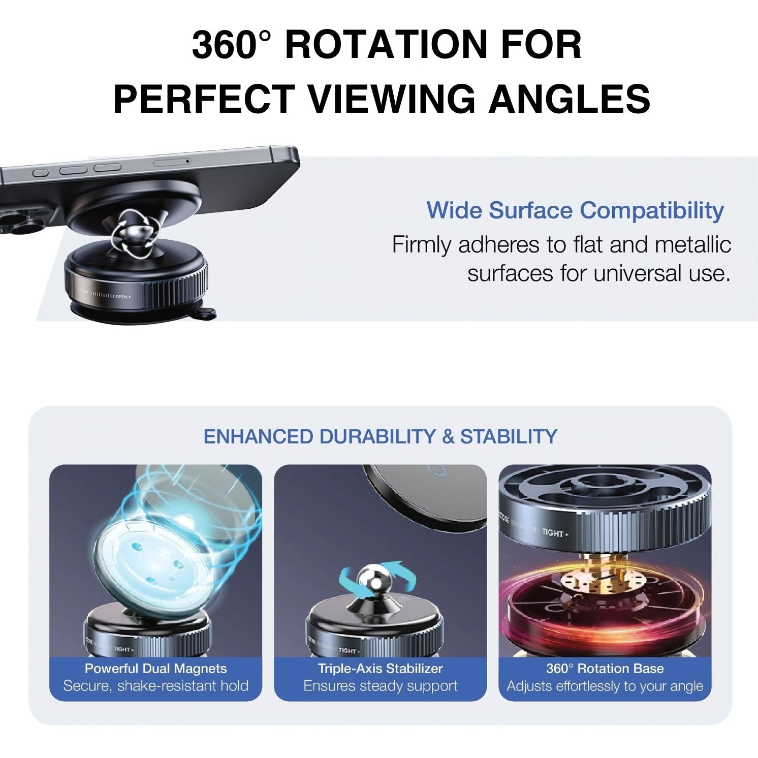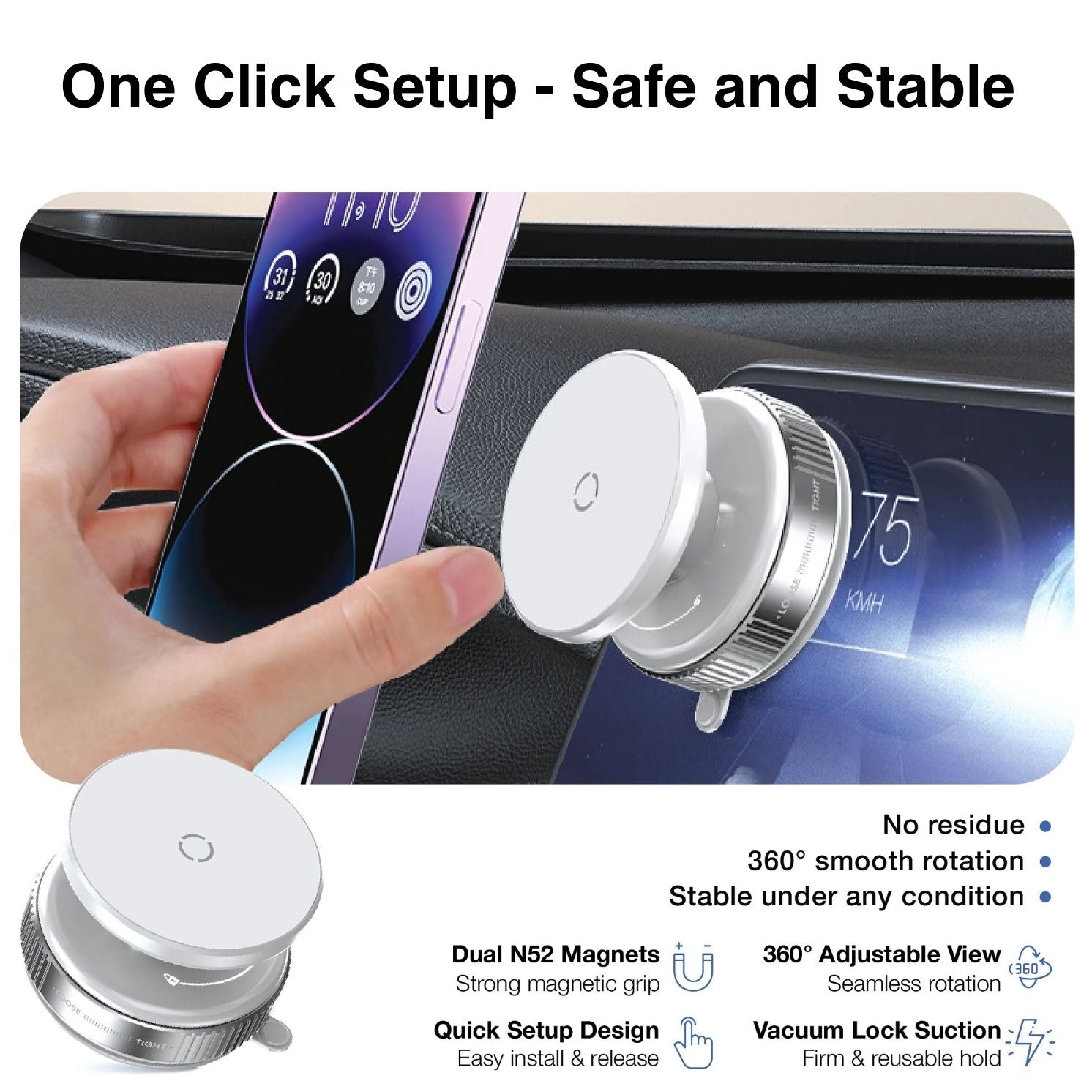 No complicated setup—just twist, lock, and enjoy a seamless mounting experience in your car, office, or home.