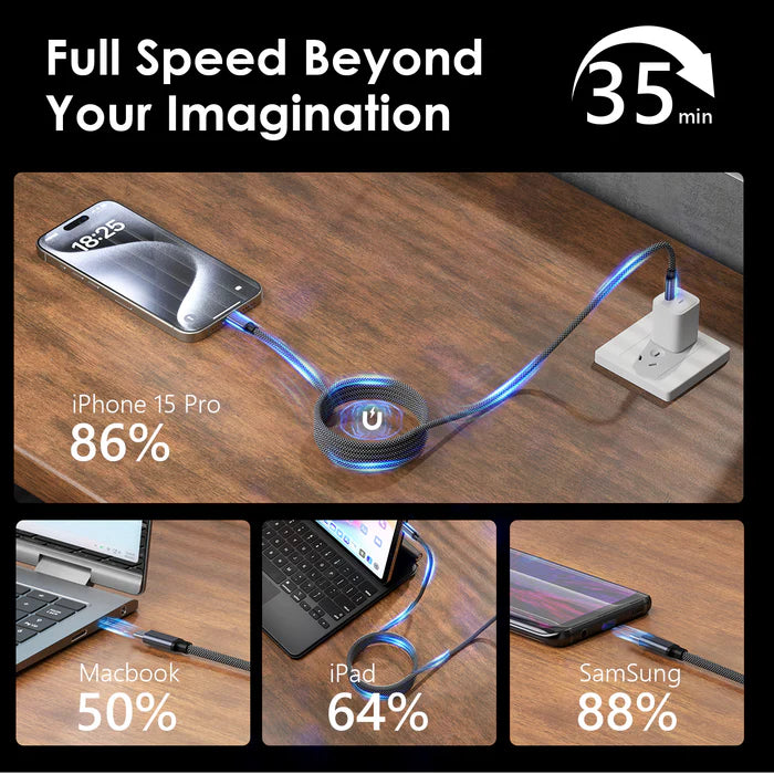 The entire cable is wrapped by soft magnets regularly that allows you to coil it swiftly and securely.