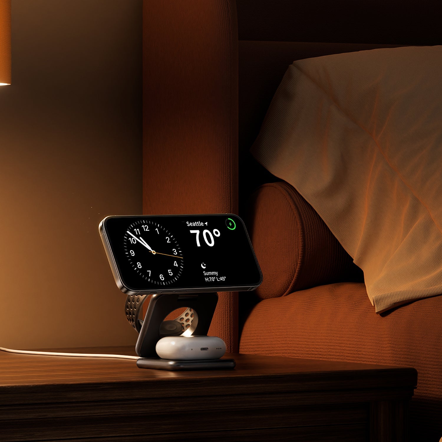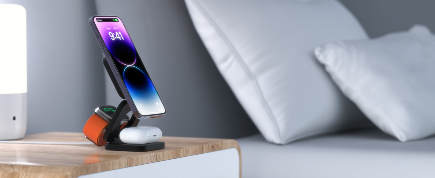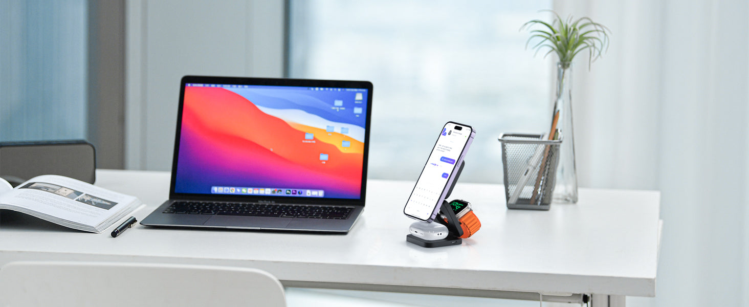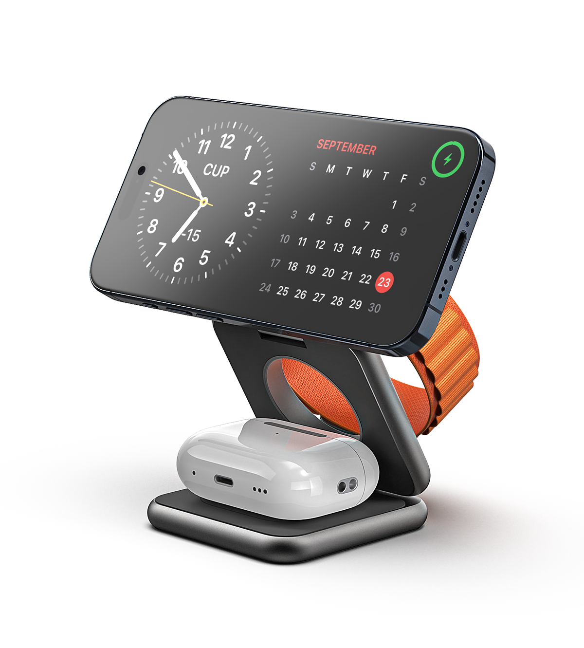 Setting up the TriFold MagStand is straightforward. Simply place your devices on the stand, and they will begin charging wirelessly. No complicated installation required.
