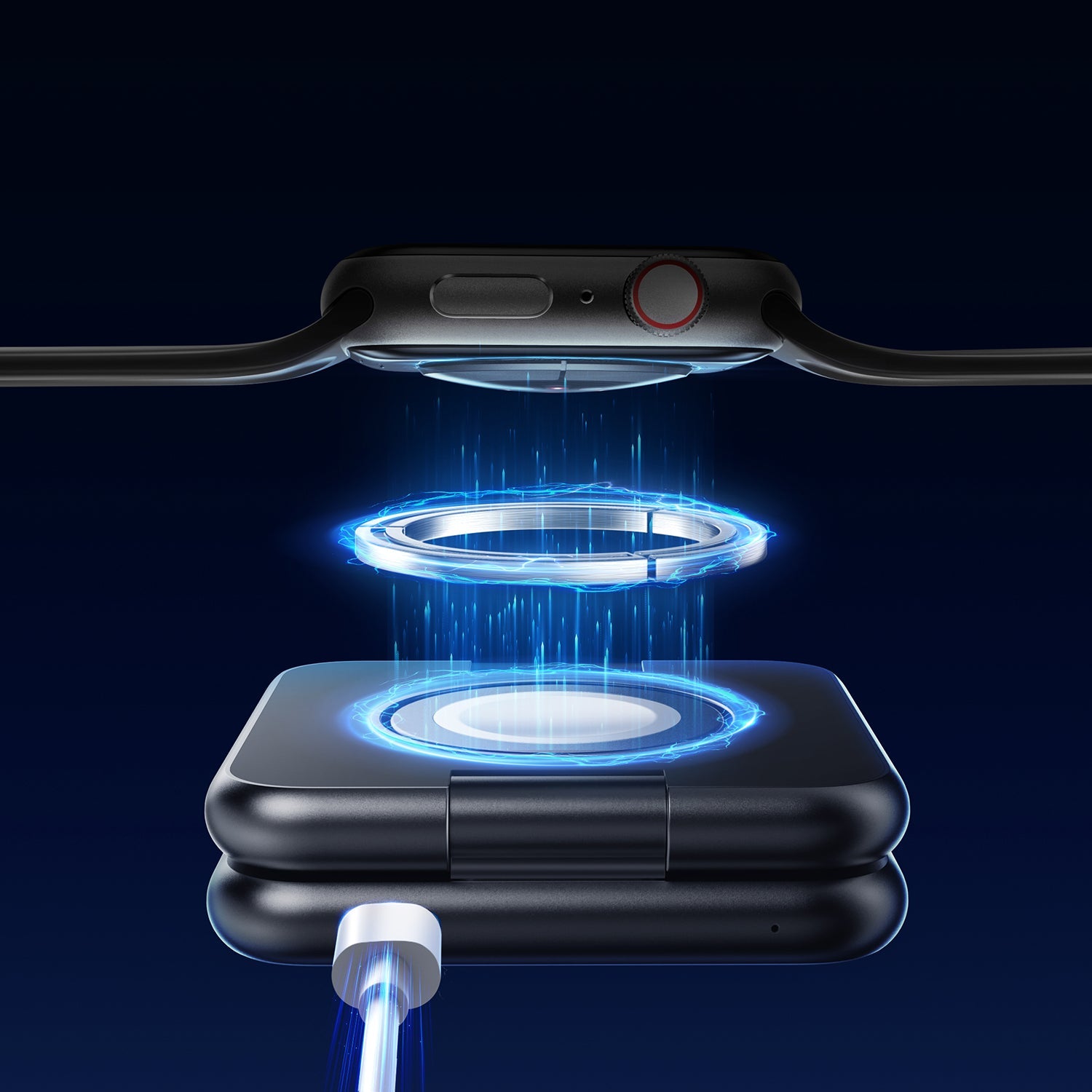 Charge Faster with the Latest Wireless Technology! The TriFold MagStand efficiently powers your iPhone, Apple Watch, and AirPods simultaneously while reducing charging time.